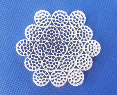 特殊的結(jié)構(gòu),空心填料結(jié)構(gòu)為內(nèi)外共有三層空心圓,每個(gè)圓內(nèi)有1條棱,外有36條棱,經(jīng)多次研究開(kāi)發(fā)成功,采用一次成型。