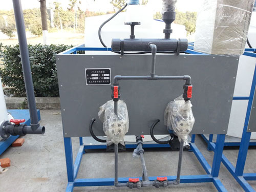 在水處理工程中加藥箱主要用于各種藥劑的攪拌、溶解、儲存,再通過計(jì)量泵或水射器將藥液投加到各投加點(diǎn)。 加藥箱外形分為方形和圓形,材質(zhì)為聚乙烯(PE),通過滾塑技術(shù)一次成型,上部預(yù)設(shè)了計(jì)量泵及攪拌機(jī)的安裝位置,攪拌機(jī)、加藥箱、計(jì)量泵三合一,使用非常方便。